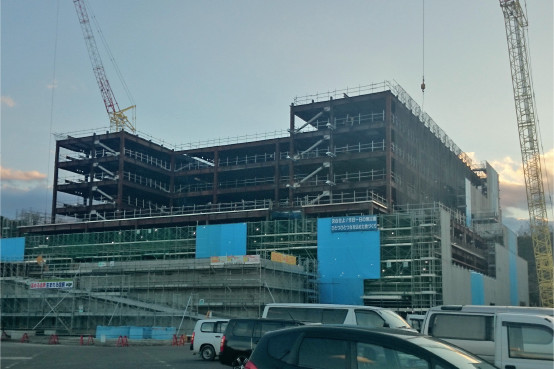 建設現場は体力勝負と思いがちですが、そうとも限りません。すごく頭も使いますし、コミュニケーション能力も必要です。困っているときは助け合い、沢山の人と連携を取りながら工事を進めていきます。この建物は複合施設として建設されました。一つの建物の中に三つの役割があります。